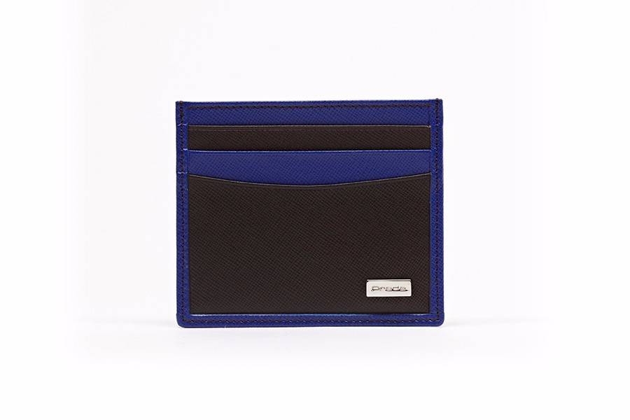 Tarjeteros chico en acabado saffiano. Detalles de franjas en contraste y placa "leones Prada" en niquel.