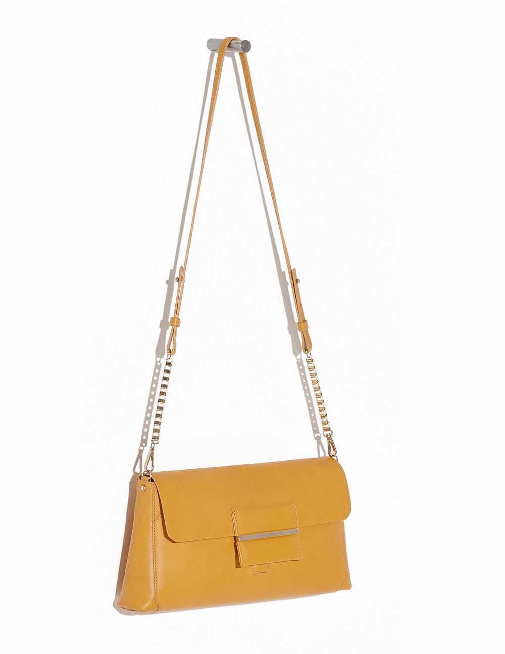 Bolso mini tote en acabado piel vaqueta. Detalle de piel en solapa con broche de imán, con placa león Prada. Bolsos utilitarios internos y acabado metálico interior. Asa de hombro en vaqueta al tono del bolso y remates de cadena cuadrada. Herrajes y fornituras en dorado, así como insignia león Prada. Medidas: 33x16x6 cm