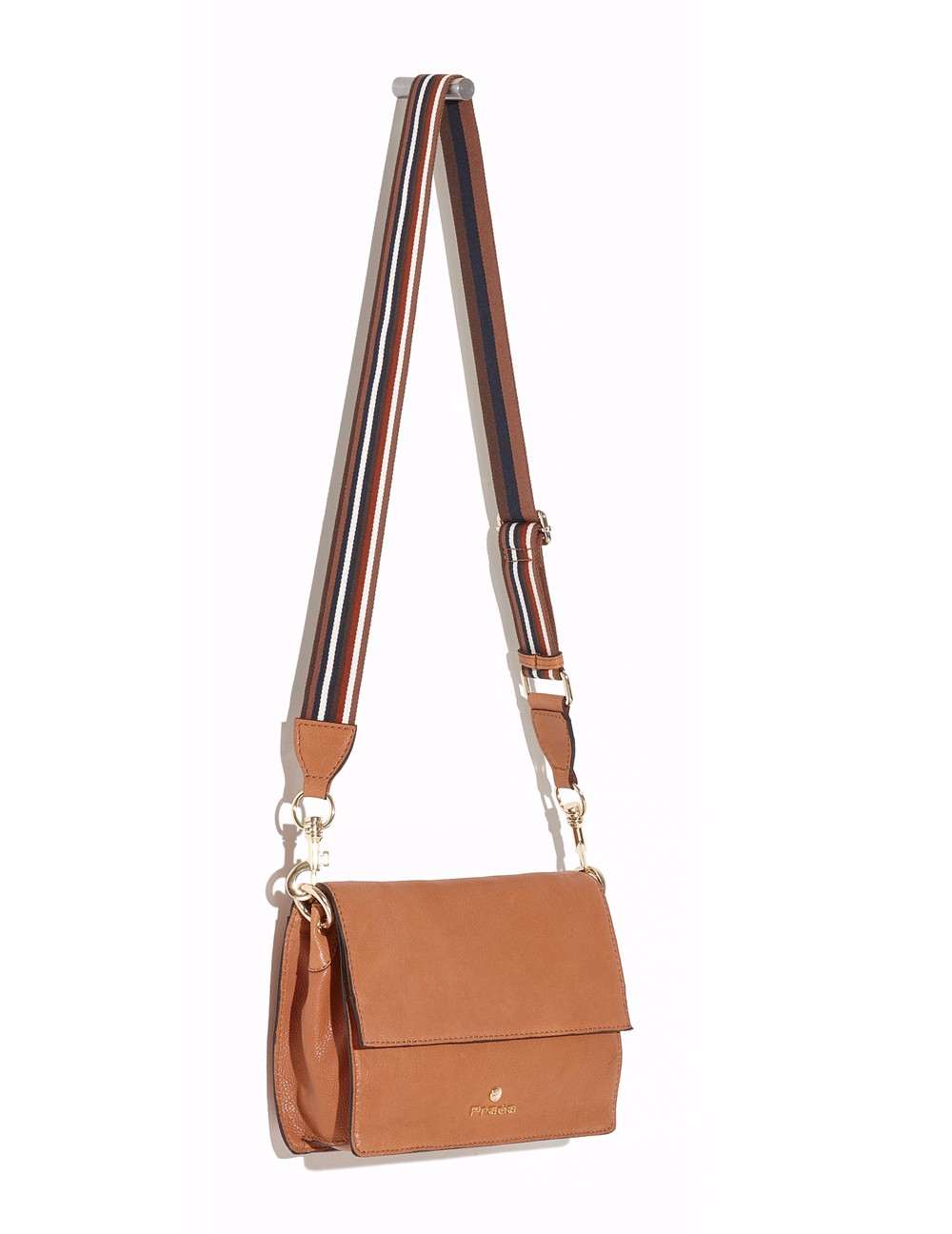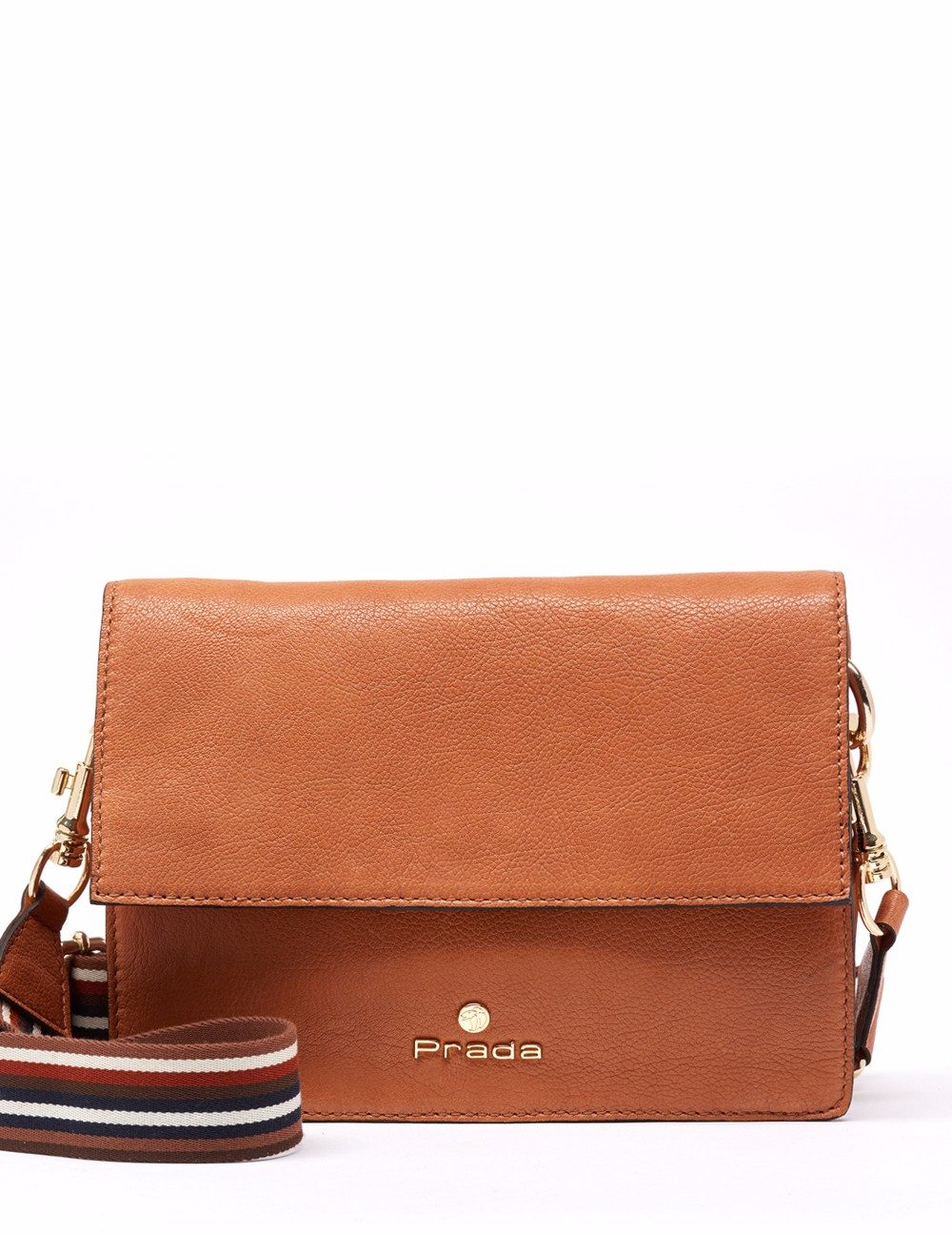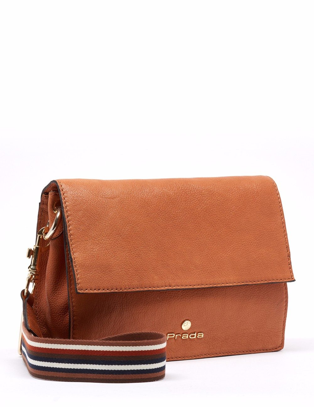 Bolso mensajero en acabado piel graneada. Detalle de solapa en el frente y asas en contraste. Bolsos utilitarios y división internos, y forro personalizado león Prada, bolso utilitario con cremallera en la parte posterior. Asa bandolera en acabado textil en contraste. Herrajes y fornituras en dorado, así como insignia león Prada. Medidas: 25.5 x 19 x 8.5 cm.