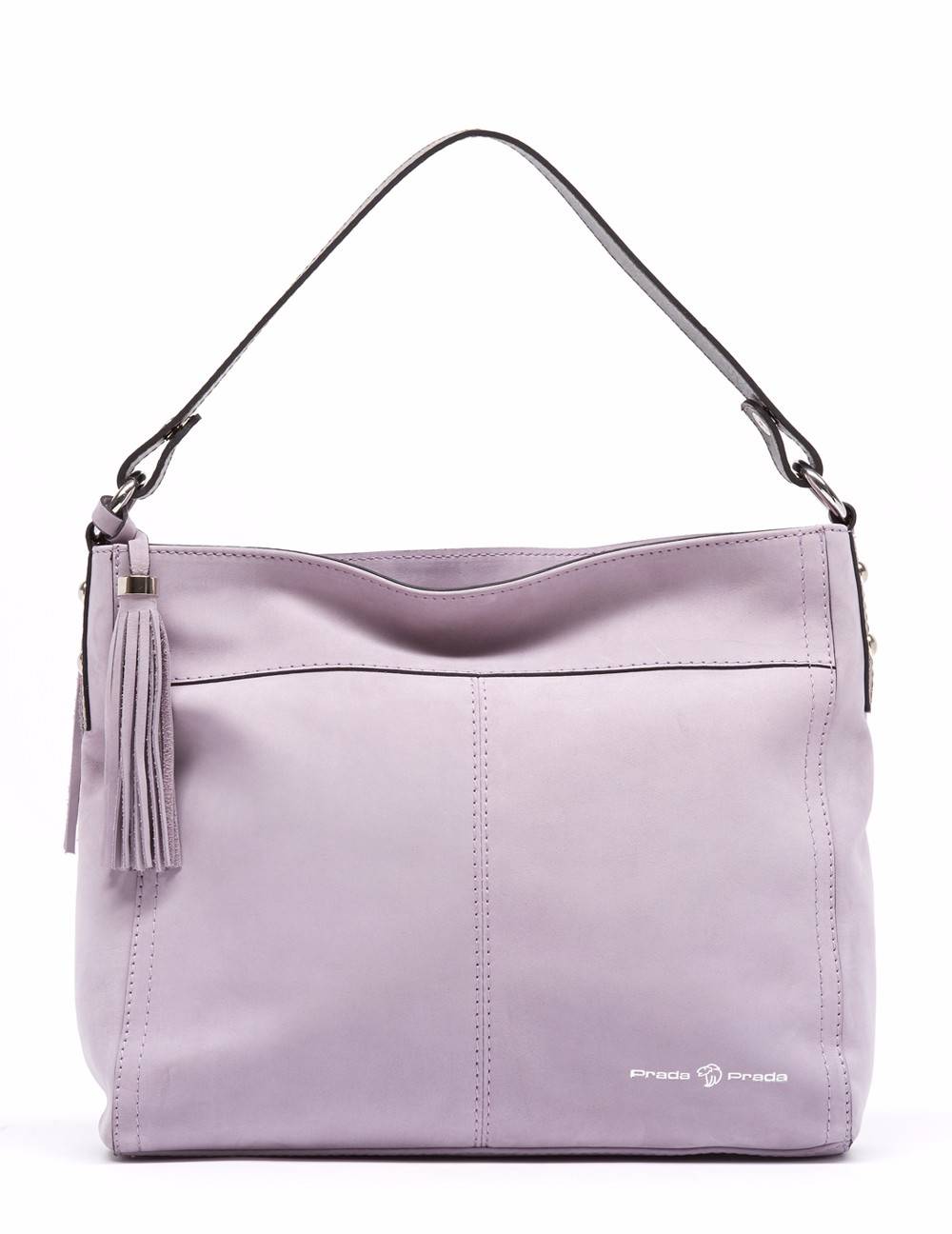 Bolso tote en acabado nobuk. Detalle de pespuntes y pompones de piel al mismo tono. Bolsos utilitarios internos y forro personalizado león Prada, bolso utilitario con cremallera en la parte posterior. Asa de mano y asa bandolera con pespuntes en contraste. Herrajes y fornituras en plateado, así como grabado a fuego y timbrado. Medidas: 36x28x7 cm