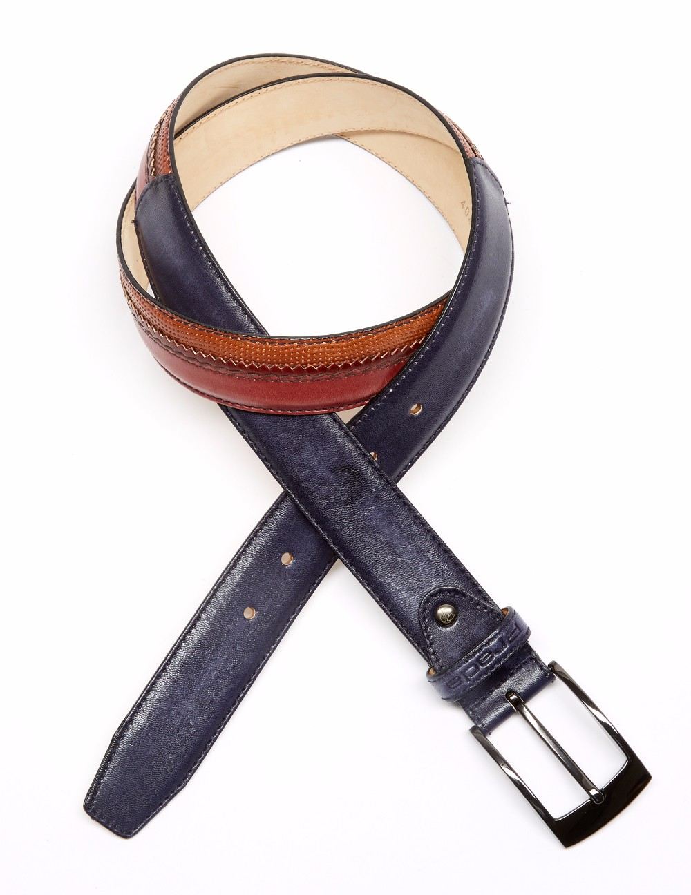 Cinturón en acabado napa. Detalle al centro de picado luigi y zig-zag, puntera y pasantín con grabado Prada. Hebilla en plateado.