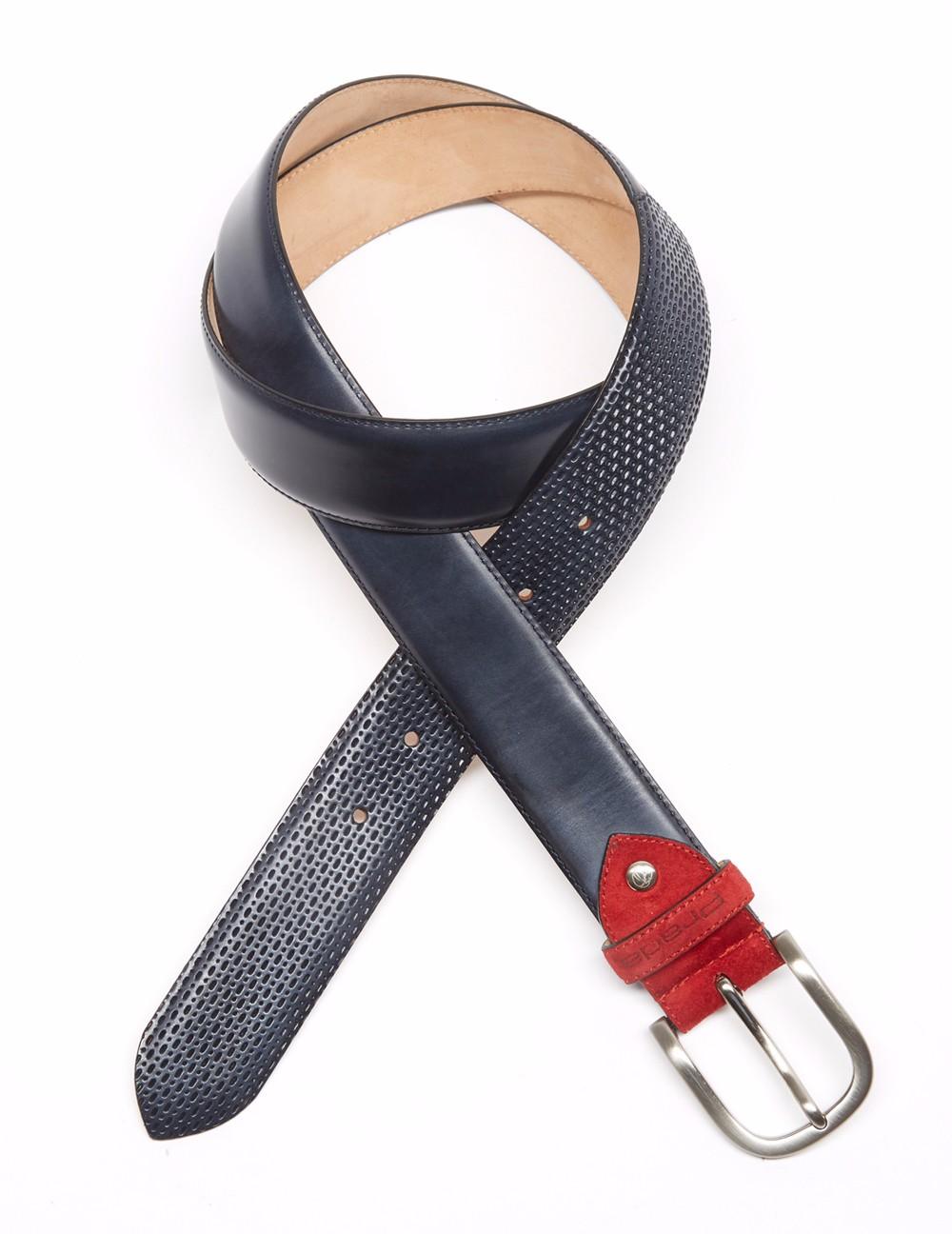 Cinturón en acabado napa. Detalle de puntera en acabado picado canasta, pasantín en acabado ante con grabado Prada. Hebilla en plateado.