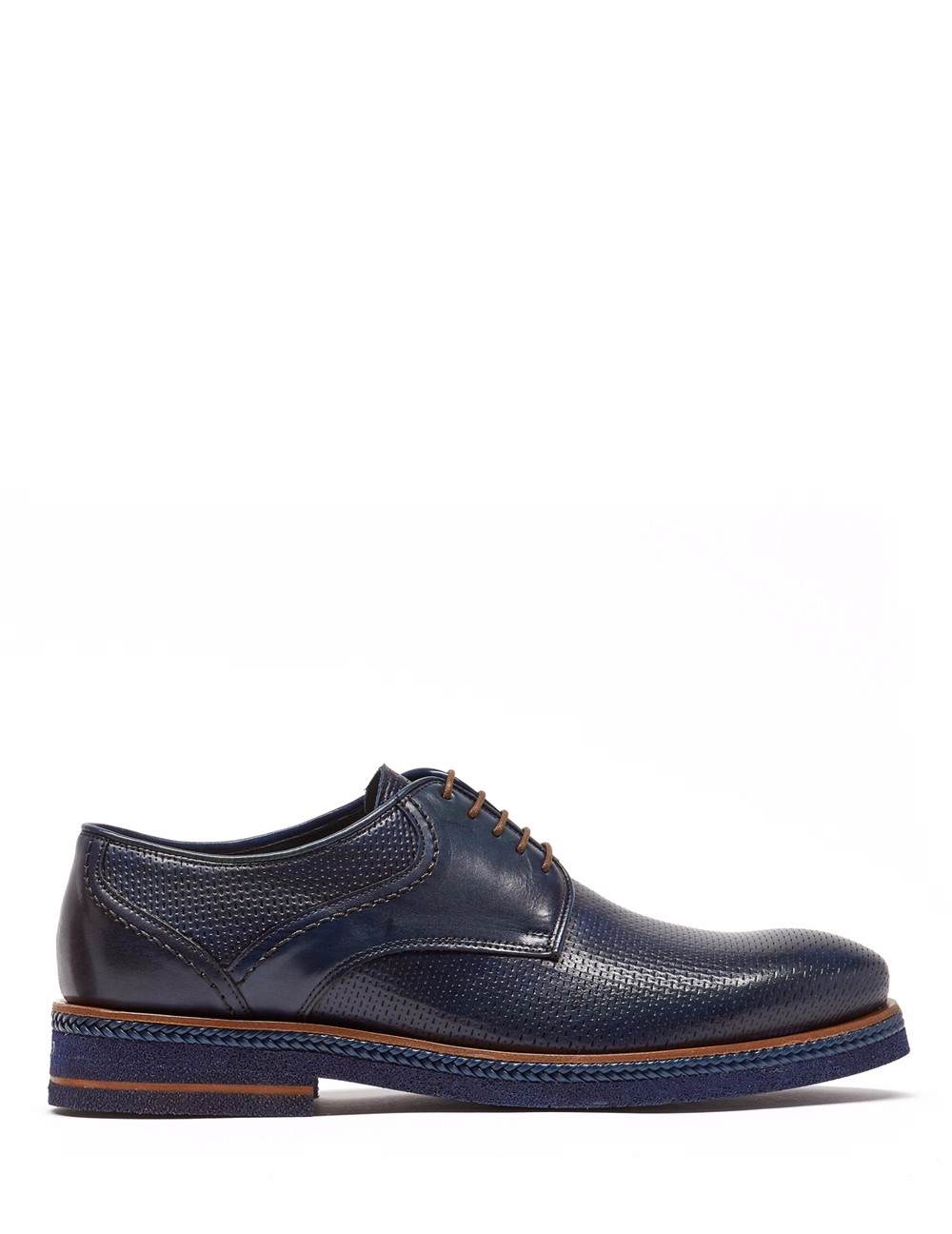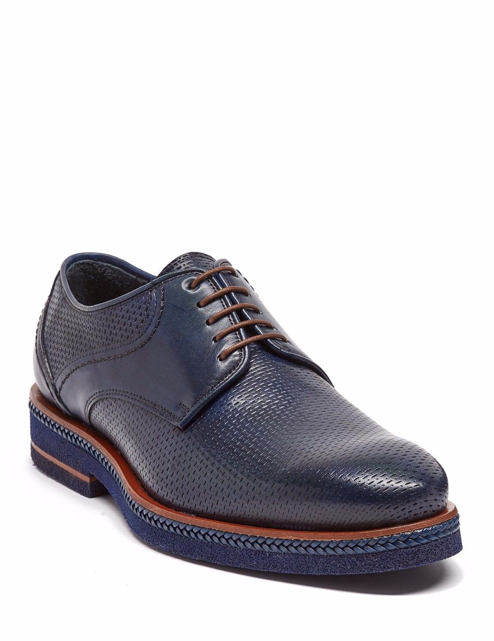 Blucher en acabado napa. Detalle de pintado tipo brush a dos colores, picado en pala y contrafuerte, piel lisa en cordoneras y cordones en contraste. Suela tipo EVA porosa y trenzado en cuadra al color del calzado.