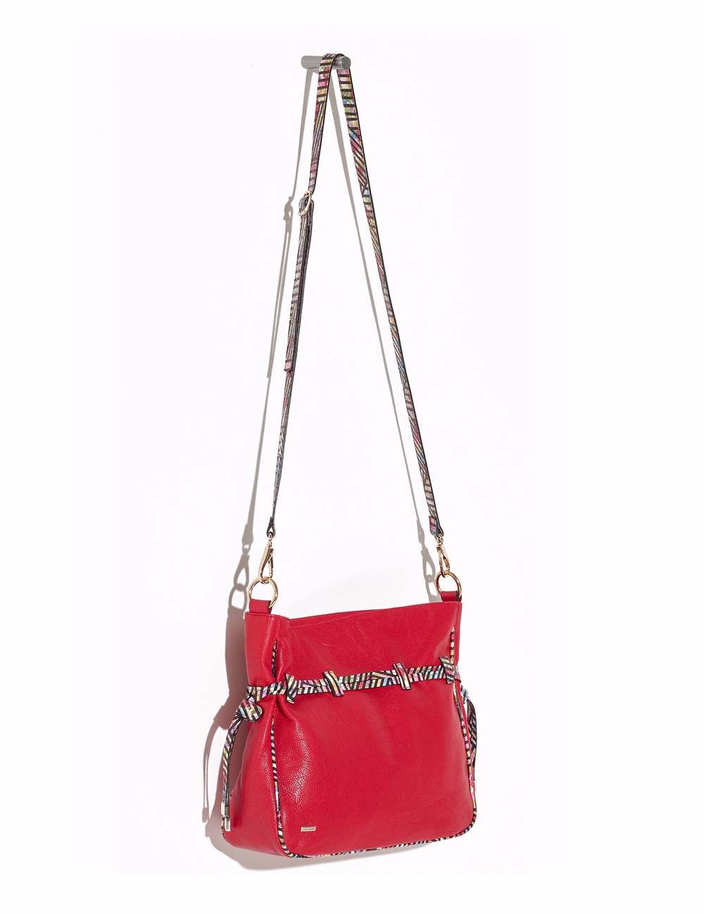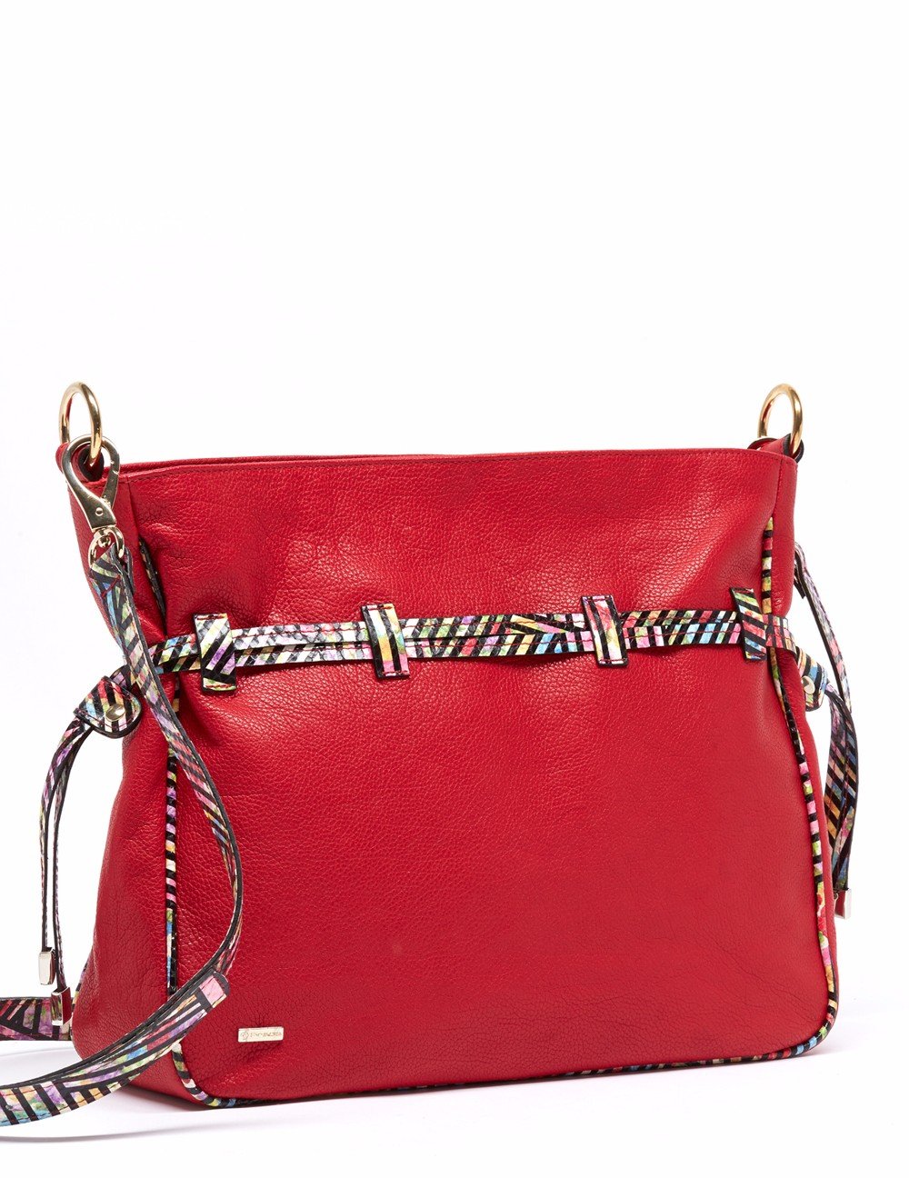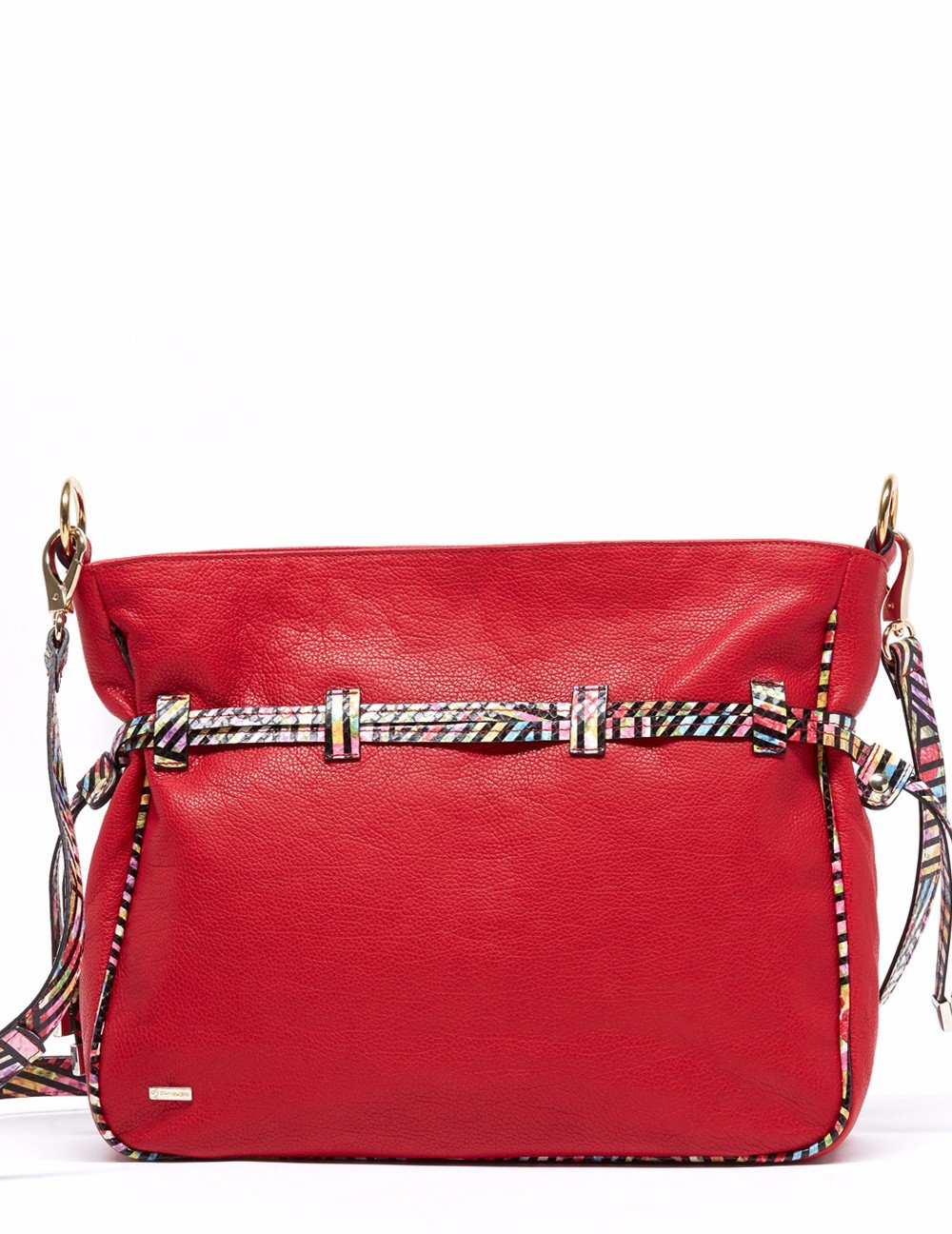 Bolso bombonera en acabado piel graneada. Detalle jareta , pasantín y asas multicolor en grabado serpiente en contraste. Bolsos utilitarios internos y forro personalizado león Prada. Asa bandolera con pespuntes en contraste. Herrajes y fornituras en dorado, así como placa león Prada. Medidas: 34x29x10 cm