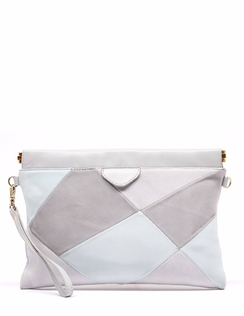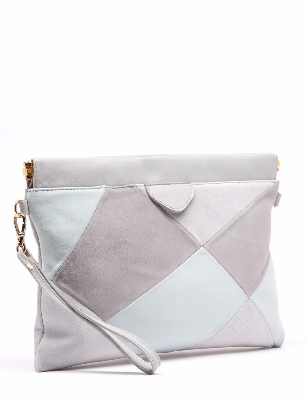 Bolso clutch en acabado napa. Detalle patchwork de ante en contrastes de ribetes de piel y boca. Bolsos utilitarios internos y forro personalizado león Prada. Asa de mano y mosquetón y asa bandolera con pespuntes en contraste. Herrajes y fornituras en plateado, así como insignia león Prada. Medidas: 29x21x3 cm