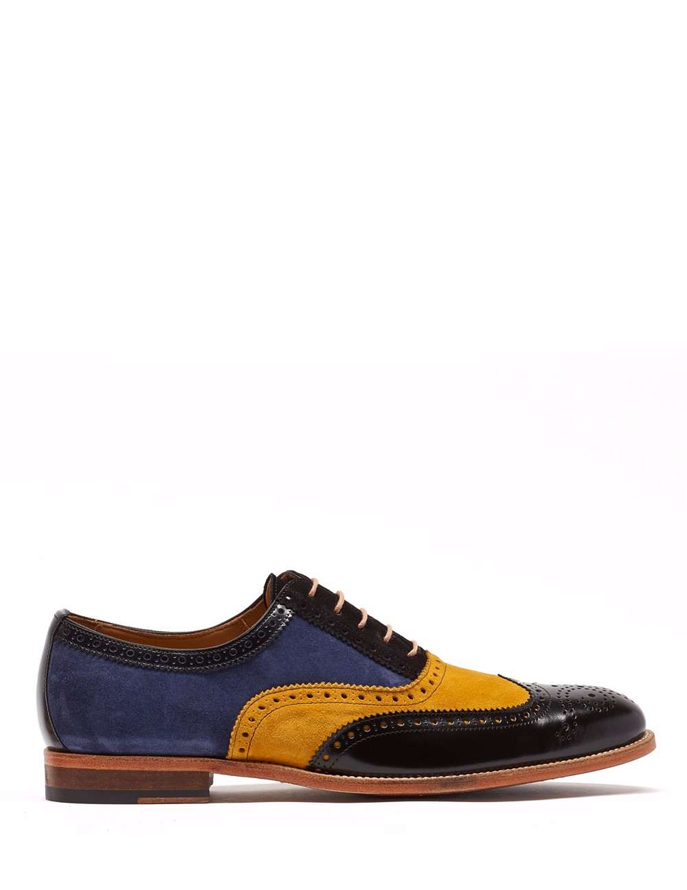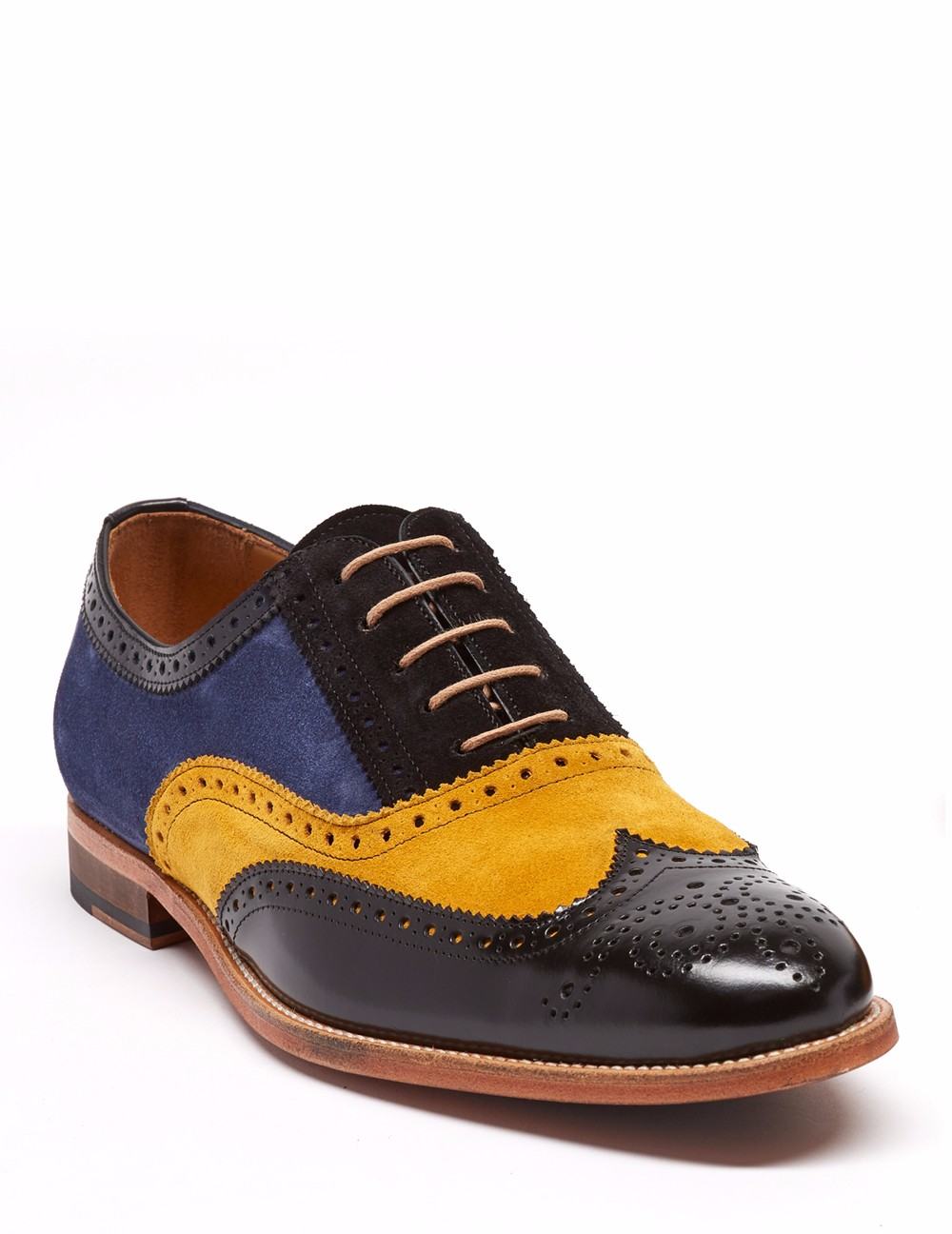 Inglés en acabado combinado florantique y ante. Detalle de picados tipo Oxford y colores en contraste, cerco natural. Suela con spy antiderrapante.