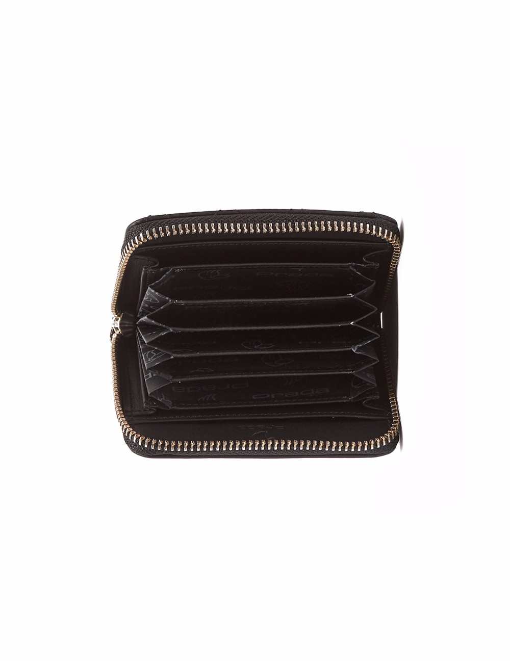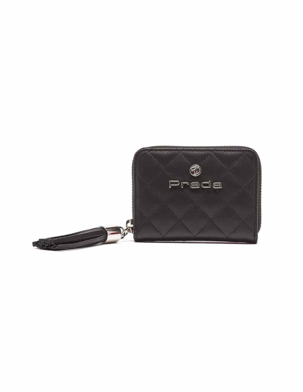Tarjeteros chico cremallera en acabado capitonado. Letras Prada y león en niquel.